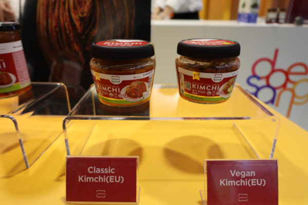 1987년 처음 탄생한 브랜드인 '종가' 김치는 현재 세계 80여개국에 수출되고 있다. 대상은 해외시장의 이 같은 수요를 반영해 소포장 형태의 병 포장부터 손잡이가 달린 1kg 규모 제품까지 다양한 패키징의 종가 제품을 전시해두고 있었다. 정 대표는 "재활용에 관심이 높은 유럽 소비자들은 파우치보다는 병 형태의 김치 패키징을 선호하는 편"이라며 "1kg짜리 대용량 제품의 경우 한국에선 집에서 쉽게 먹는 용도지만 유럽에서는 레스토랑이나 호텔 등에서 사용하는 경우가 많다"고 설명했다.