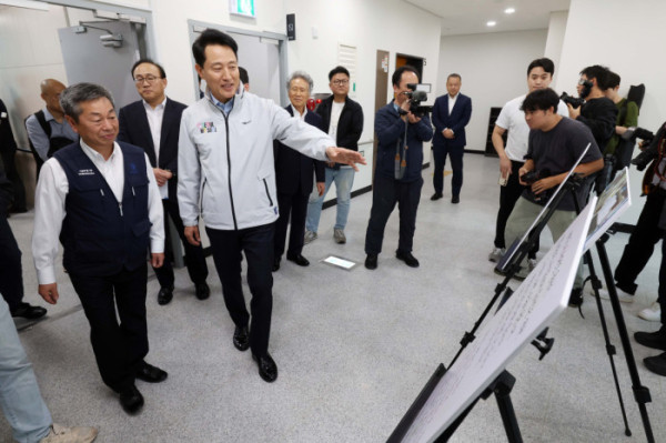▲오세훈 서울시장이 14일 서울 중구 해든센터에서 열린 ‘공공임대주택 해든집’ 입주 축하행사에서 내부 시설을 둘러보고 있다. ‘해든집’은 ‘해가 드는 집, 희망이 스며드는 집’이라는 뜻으로 ‘남대문 쪽방촌(양동구역 제11·12지구)’ 주민들을 위해 새롭게 지어진 보금자리다. 해든집은 지난달 초부터 입주를 시작해 현재까지 142세대가 둥지를 틀었다. 신태현 기자 holjjak@