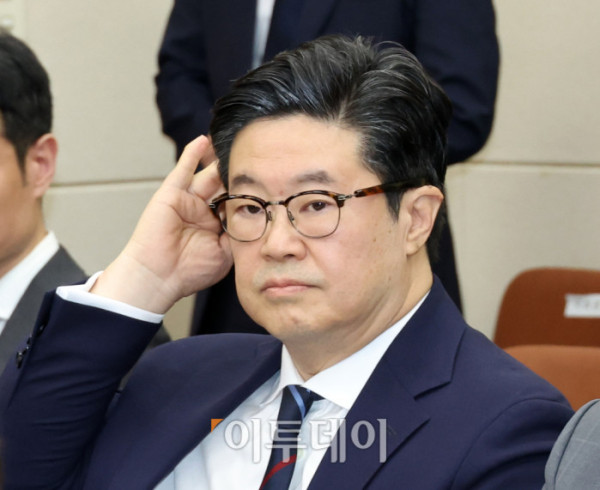 ▲김병주 MBK파트너스 회장이 14일 서울 여의도 국회에서 열린 정무위원회 국정감사에서 증인으로 출석하고 있다. 고이란 기자 photoeran@