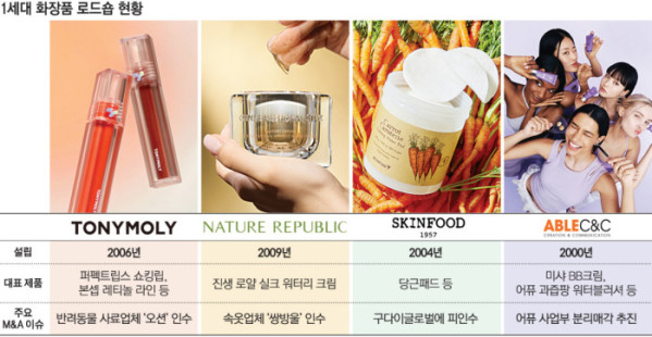 20일 화장품업계에 따르면 토니모리와 스킨푸드는 저가 브랜드와 채널 다변화 등 마케팅 중심 전략으로 재도약을 꾀하는 반면, 네이처리퍼블릭과 에이블씨엔씨는 구조조정과 인수합병(M&A)을 통해 생존 전략을 모색 중이다.