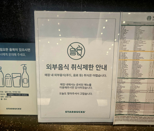 스타벅스 관계자는 “매장 이용 고객들의 쾌적한 스타벅스 경험을 위해 모든 매장에서 외부 음료 및 음식 취식 제한 안내를 진행하고 있다”고 전했다.