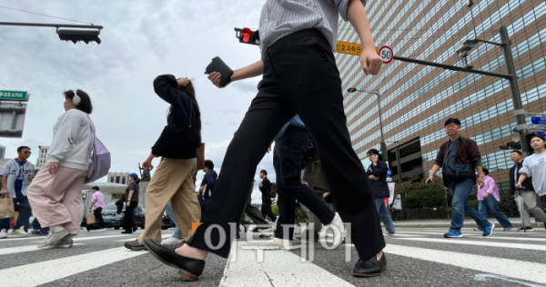 ▲구름이 많은 15일 오후 서울 광화문에서 시민들이 횡단보도를 건너고 있다. 기상청에 따르면 내일 서울의 최고기온은 23도로 오후부터 흐릴 예정이다. 박진희 수습기자 jinhee12@