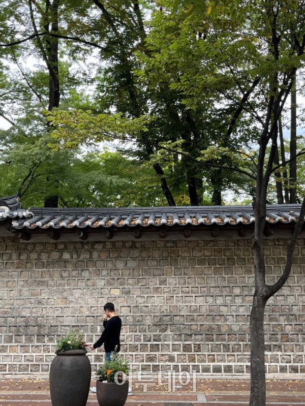 ▲아직 단풍이 물들지 않은 15일 서울 덕수궁 돌담길에서 한 시민이 멈춰 서있다. 박진희 수습기자 jinhee12@