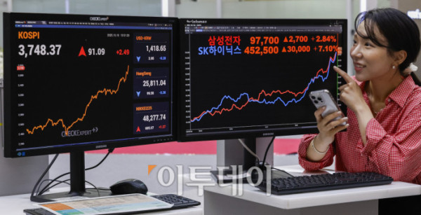 외국인이 3년 국채선물을 대량 순매도한데다, 주식시장이 랠리를 이어간 것도 영향을 미쳤다. 코스피는 오늘도 2% 넘게 폭등해 3700선을 훌쩍 넘기며 이틀연속 사상 최고치를 경신했다.