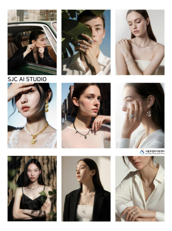 서울주얼리지원센터는 AI로 생성한 가상 모델이 실제처럼 주얼리를 착용한 룩북을 ‘SJC AI 스튜디오’를 통해 공개했다. 기존의 모델 섭외, 촬영, 보정 등의 과정을 AI 기술로 대체해 실제 착용에 가까운 고품질 이미지를 구현했다.