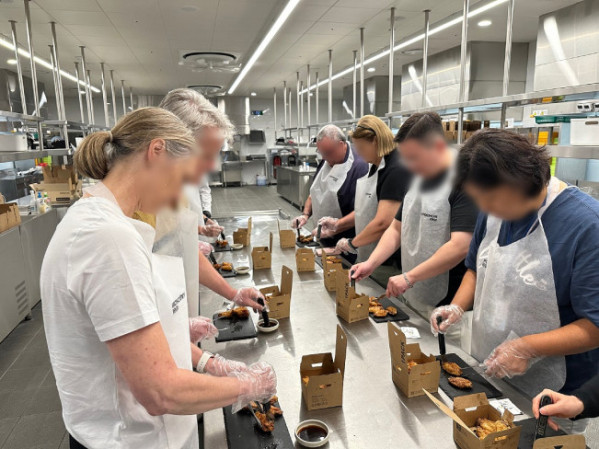 ▲교촌에프앤비 교육 R&D센터 ‘정구관’에서 진행된 ‘교촌1991스쿨’에 참석한 글로벌 고객들이 교촌치킨을 조리하고 있다.
