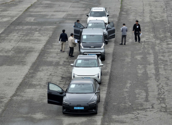 이투데이가 주최하는 ‘2025 대한민국 스마트 EV 대상’ 실차 시승평가가 열린 18일 경기 화성시 한국교통안전공단 자동차안전연구원에서 심사위원단이 평가를 하고 있다.