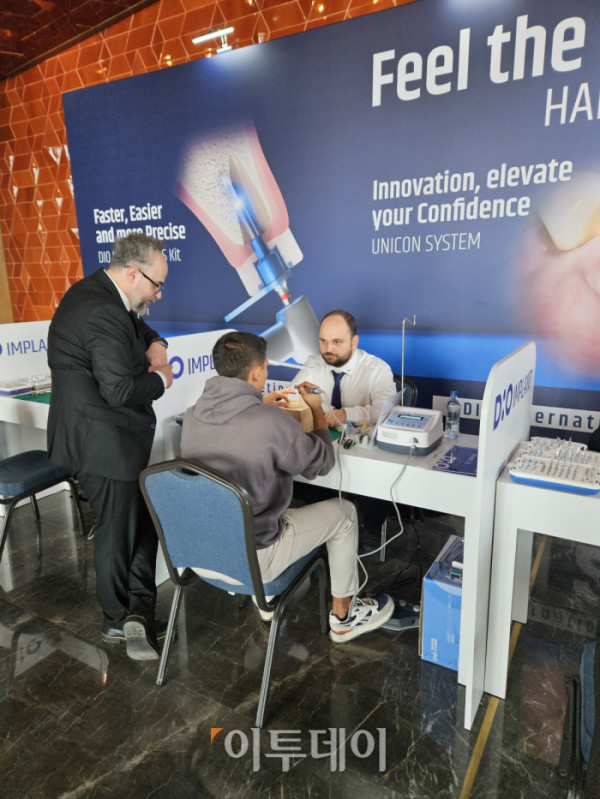 튀르키예 남동쪽에 위치한 아디야만에서 임플란트를 시술하는 엠레 진폴라트(emre cinpolat) 씨는 핸즈온 부스에서 유니콘을 체험한 후 “편리하다”며 만족스러운 미소를 지었다. 새로운 기술을 확인하기 위해 이곳을 찾았다는 그는 “디오의 디지털 임플란트는 시술자가 사용하기 쉬운 것이 장점”이라고 말했다.
