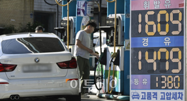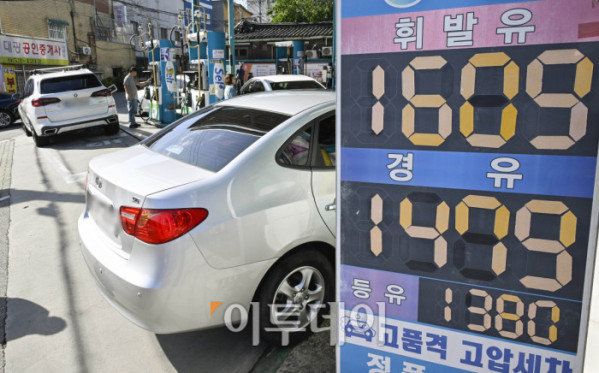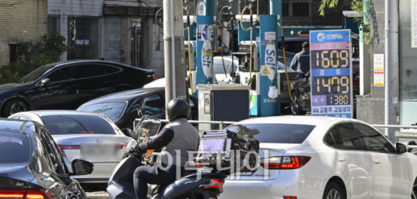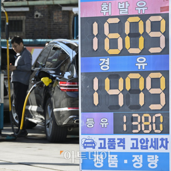 주유소 휘발유 평균 판매 가격이 4주만에 하락하고, 경유 평균 판매 가격은 4주 연속 상승세를 기록했다. 한국석유공사 유가정보서비스 오피넷에 따르면 10월 셋째주 휘발유 평균 판매가격은 전주보다 0.5원 하락한 리터 당 1662.7원을, 경유 판매가격은 0.2원 오른 1535.8원을 나타냈다. 19일 서울 시내 한 주유소에 유가정보가 게시돼 있다. 조현호 기자 hyunho@