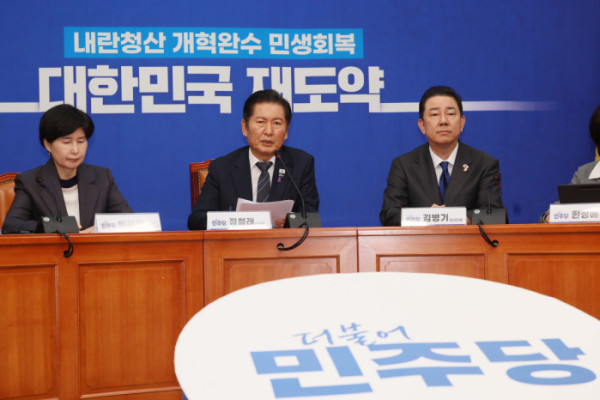 ▲정청래 더불어민주당 대표가 20일 서울 여의도 국회에서 열린 민주당 사법개혁특별위원회의 사법개혁안 발표에 앞서 발언하고 있다. 신태현 기자 holjjak@