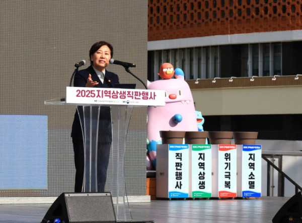 송미령 농림축산식품부 장관은 20일 서울광장에서 열린 ‘2025 지역상생직판행사’ 개막식에 참석해 농업·농촌 발전을 위한 군수협의회의 역할을 강조하며, 지방소멸 대응과 지속 가능한 지역 발전 방안을 논의했다.