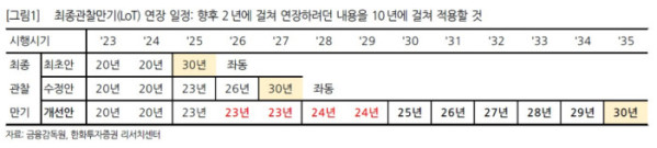 금융당국이 보험부채 할인율의 ‘최종관찰만기(LoT·Last Observation Term)’ 적용 시점을 2035년까지 단계적으로 연장하고, 듀레이션갭(자산·부채 만기 불일치) 규제 도입을 병행하기로 했다. 표면적으로는 완화된 조치로 보험업계는 단기적 자본비율 부담을 덜게 됐지만, 중장기적으로는 금리리스크 관리와 자산·부채 관리(ALM)에 대한 책임이 더 커졌다는 평가다. 채권시장에 미칠 영향도 제한적이라고 봤다.