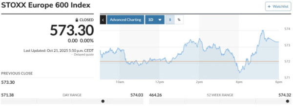 범유럽 주가지수인 스톡스유럽600 지수는 전 거래일 대비 1.20포인트(0.21%) 오른 573.30에 마감했다. 독일 프랑크푸르트증시 DAX30지수는 71.23포인트(0.29%) 상승한 2만4330.03에, 영국 런던증시 FTSE100지수는 23.42포인트(0.25%) 오른 9426.99에, 프랑스 파리증시 CAC40지수는 52.79포인트(0.64%) 상승한 8258.86에 거래를 마쳤다.
