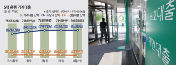한 시중은행 관계자는 “10월 들어 대출 수요가 규제 전 대비 절반 수준으로 줄었다”며 “특히 신규 주택구입 목적 대출은 6·27 이전보다 확연히 감소했고 전세·집단대출 중심으로만 일부 수요가 이어지고 있다”고 말했다. 이어 “하반기 가계대출 총량 목표가 조기 소진되면서 신규 취급 여력이 제한적이라 당분간 대출 증가세가 확대되긴 어려울 것”이라고 덧붙였다.