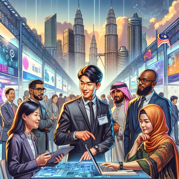 ▲말레이시아 쿠알라룸푸르에서 열린 국제 비즈니스 행사에 적극적으로 참여하고 있는 인천사 젊은 기업가들을 묘사한 이미지 (김재학 기자·오픈AI 달리)