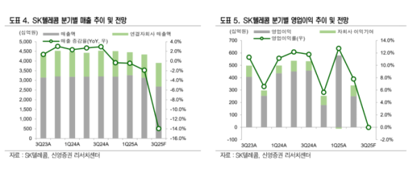 신영증권은 SK텔레콤의 올해 연간 영업이익을 1조1473억 원으로 전년 대비 37% 감소할 것으로 예상했다. 반면 2026년 영업이익은 1조7234억 원으로 전년 대비 50.2% 증가하며 정상적 수익성을 회복할 것으로 내다봤다. 정 연구원은 “3분기 실적은 방어 국면이지만 배당 불확실성만 해소된다면 기업가치 재평가 구간에 진입할 수 있다”고 말했다.