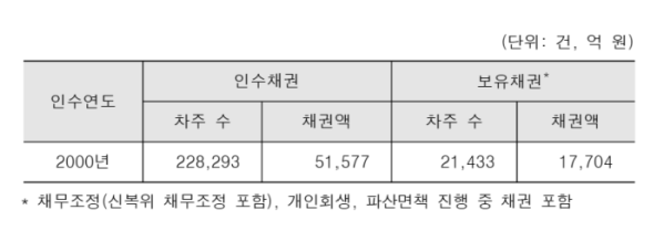 ▲한국자산관리공사가 2000년 인수한 채권 현황 (자료제공 = 박찬대 의원실)