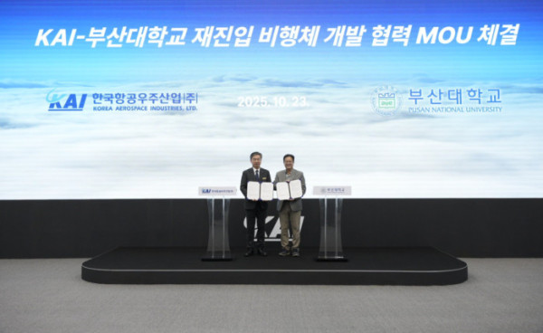 협약식은 KAI 미래융합기술원 김지홍 원장과 부산대 항공우주공학과 이대우 교수 등 양측 주요 관계자들이 참석한 가운데 일산 KINTEX에서 진행 중인 ADEX 2025 전시회의 KAI 부스에서 개최됐다.