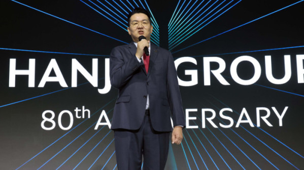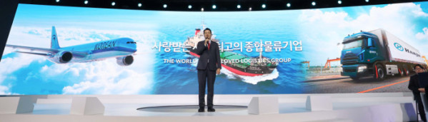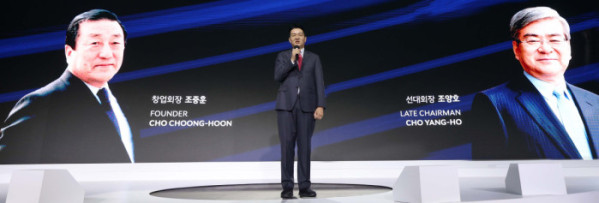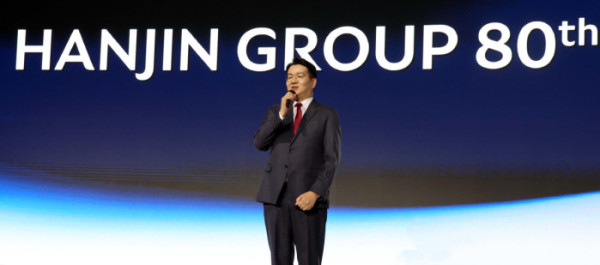 ▲조원태 한진그룹 회장이 23일 서울 용산구 그랜드하얏트호텔에서 열린 '한진그룹 80주년 기념행사'에서 발언하고 있다. 신태현 기자 holjjak@