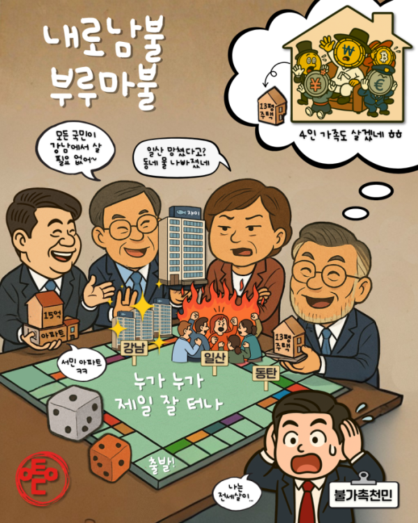 [AI 코인패밀리 만평] 내로남불 부루마불...최후 승자는?