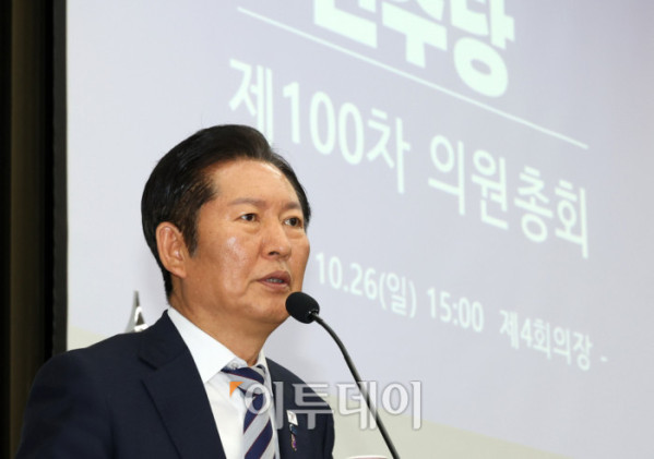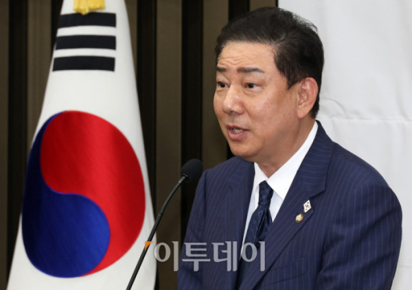 ▲정청래 더불어민주당 대표가 26일 서울 여의도 국회에서 열린 의원총회에서 발언을 하고 있다. 고이란 기자 photoeran@