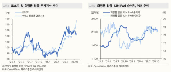 박종대 메리츠증권 연구원은 "중국산 저가 제품 감소는 한국산의 점유율 상승으로 이어졌다"며 "7월 이후 미국 내 한국 화장품 점유율은 27.1%로, 14월 평균 21.2%보다 5.9%포인트 상승했다. 주요 수입 5개국 중 점유율이 오른 국가는 한국뿐으로, 관세가 단기 부담이 아닌 점유율 확대 계기로 작용한 셈"이라고 짚었다.
