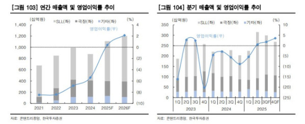 그는 콘텐트리중앙이 올해 매출액 1조1000억 원, 영업이익 149억 원을 기록할 것으로 전망했다. 매출액은 전년 동기 대비 21.1% 증가하고, 같은 기간 영업이익은 흑자로 전환할 것으로 봤다.