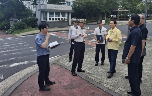 ▲최근 제주지역 고령 보행자 사망사고가 잇따르자 교통사망사고 취약지역 합동 현장점검. (사진제공=제주도자치경찰위원회)