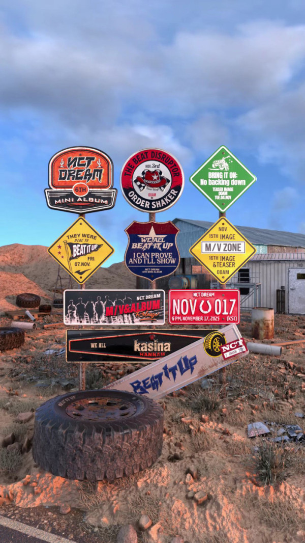 오늘(28일) 0시 NCT 드림 공식 사회관계망서비스(SNS) 채널에 게재된 여섯 번째 미니앨범 ‘비트 잇 업(Beat It Up)’의 스케줄 포스터에는 자유로운 사막 위 세워져 있는 표지판 속 다채로운 콘텐츠 공개 일정이 적혀 있어 눈길을 끌었다.