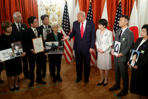 28일 CNN방송에 따르면 면담은 미ㆍ일 정상회담이 열렸던 도쿄 모토아카사카 영빈관에서 진행됐고 납북자 가족들은 납북자 사진을 품은 채 트럼프 대통령을 마주했다.