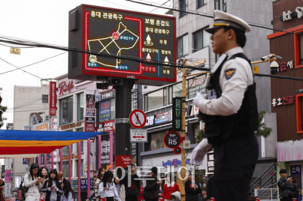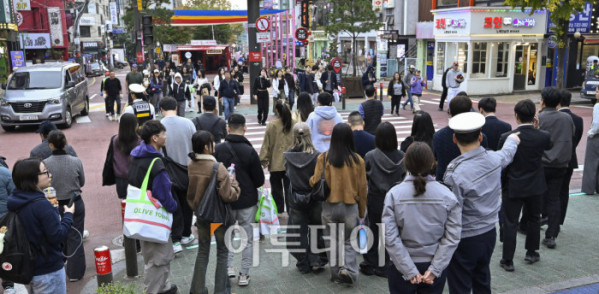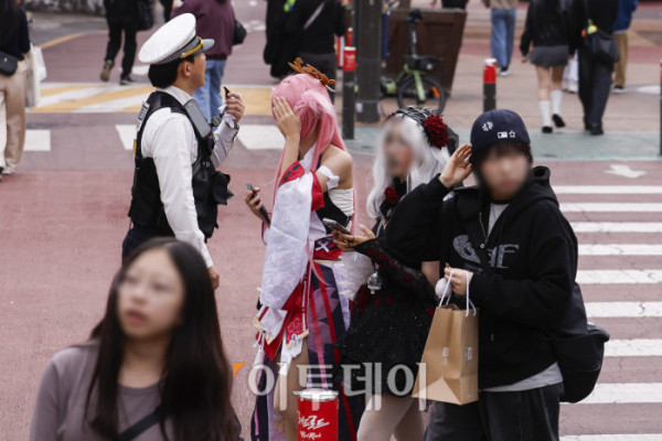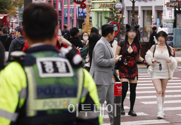 ▲핼러윈데이인 31일 서울 마포구 홍대거리에서 경찰이 인파 관리를 하고 있다. 조현호 기자 hyunho@