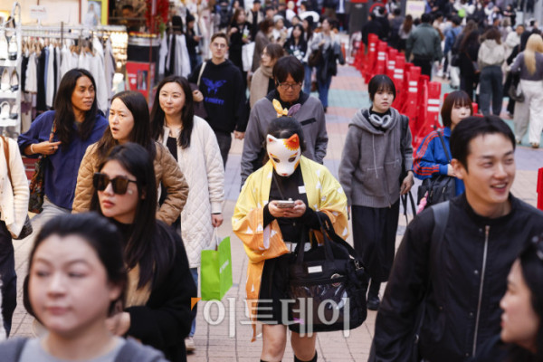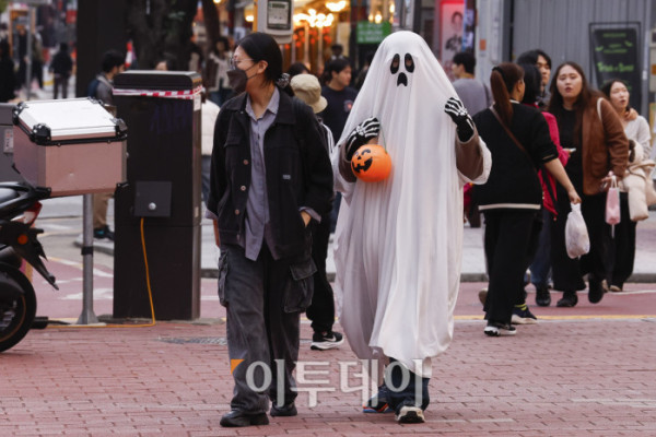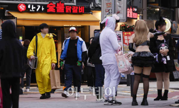 ▲핼러윈데이인 31일 서울 마포구 홍대거리에서 핼러윈 분장을 한 시민들이 발걸음을 옮기고 있다. 조현호 기자 hyunho@