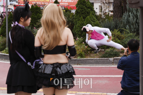 ▲핼러윈데이인 31일 서울 마포구 홍대거리에서 핼러윈 분장을 한 시민들이 기념사진을 찍고 있다. 조현호 기자 hyunho@