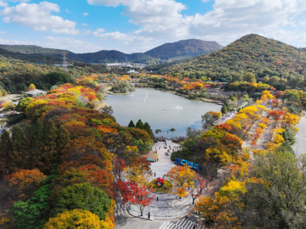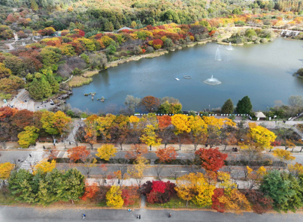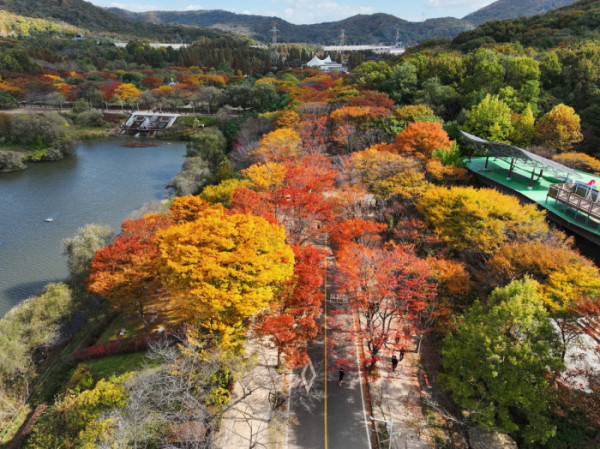 가을 단풍이 절정에 접어든 2일 인천 남동구 인천대공원에 울긋불긋 물든 단풍이 깊어가는 계절의 정취를 전하고 있다. 이날 오후부터 북쪽의 찬 공기가 남하해 기온이 떨어지면서 오후 늦게부터 전국 곳곳에 한파주의보가 발효된다. 3일 아침엔 서울 1도, 파주 영하 3도, 대관령 영하 4도 등 전국에 0도 안팎의 추위가 찾아올 것으로 예상된다.