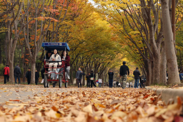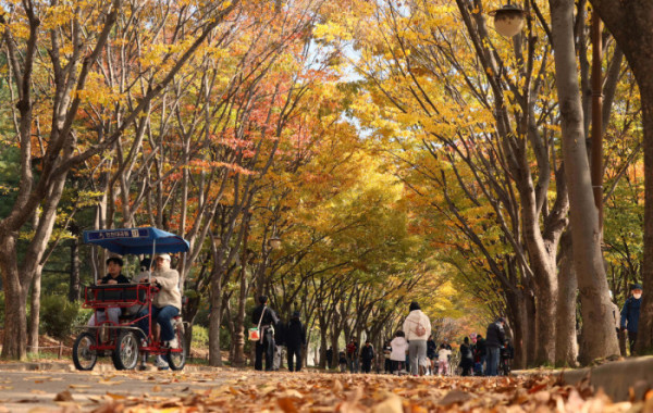 ▲가을 단풍이 절정에 접어든 2일 인천 남동구 인천대공원에 울긋불긋 물든 단풍이 깊어가는 계절의 정취를 전하고 있다. 이날 오후부터 북쪽의 찬 공기가 남하해 기온이 떨어지면서 오후 늦게부터 전국 곳곳에 한파주의보가 발효된다. 3일 아침엔 서울 1도, 파주 영하 3도, 대관령 영하 4도 등 전국에 0도 안팎의 추위가 찾아올 것으로 예상된다. 신태현 기자 holjjak@