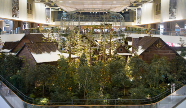 마을 중앙에는 천장을 찌를 듯한 8미터(m) 높이 나무를 중심으로 총 100그루의 숲이 있었다. 나무 한 그루, 한 그루, 흰 눈과 크리스마스 전구로 은빛 장관이었다. 흰 늑대 등 겨울 동물까지 더해져 생생함을 더했다. 특히 하얀 눈의 질감은 가까이서 봐도 진짜 눈 같았다. 현대백화점 관계자는 “지붕 위 눈이나 고드름 등은 레진을 통해 하나하나 구현해 실제 눈처럼 보이도록 노력했다”고 설명했다.