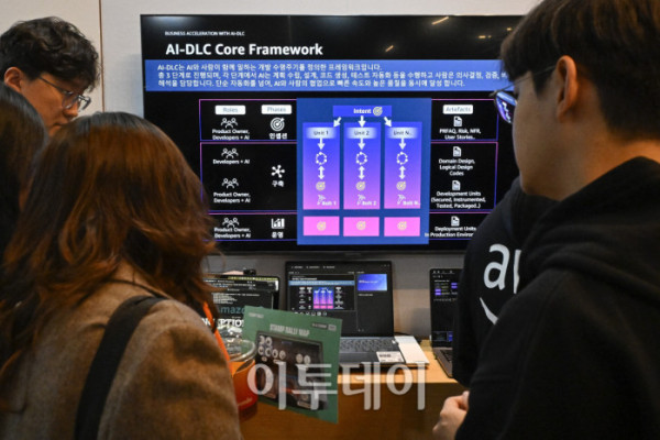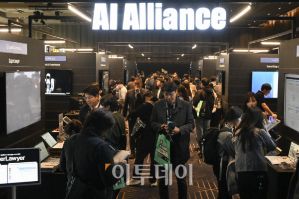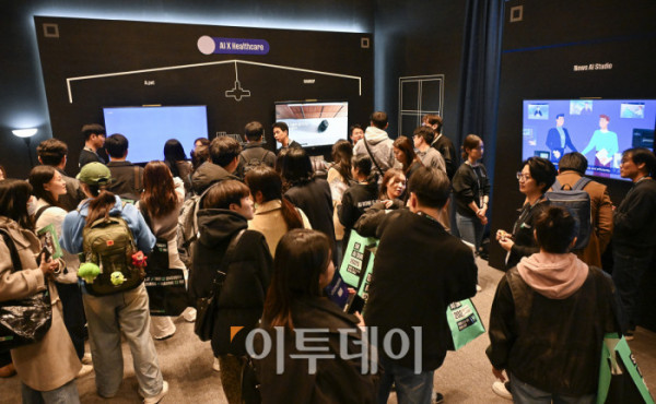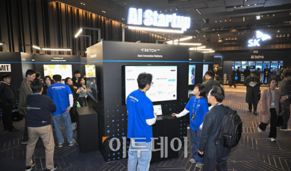 ▲3일 서울 강남구 코엑스에서 열린 SK AI SUMMIT 2025에서 관람객들이 전시를 관람하고 있다. 조현호 기자 hyunho@