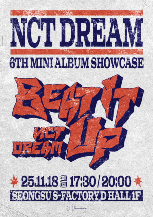 NCT 드림은 17일 여섯 번째 미니앨범 ‘비트 잇 업(Beat It Up)’을 발표한 뒤, 18일 오후 5시 30분과 8시 2회에 걸쳐 서울 성수동 S팩토리 D홀에서 새 앨범 발매 기념 쇼케이스를 열고 컴백 열기를 이어간다.
