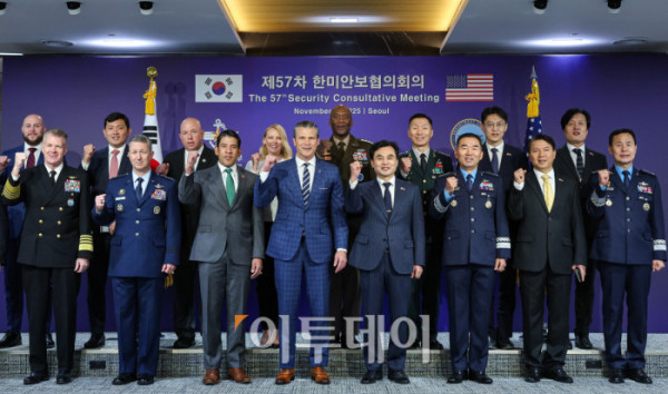 ▲안규백(앞줄 오른쪽 네 번째) 국방부 장관과 피트 헤그세스(앞줄 오른쪽 다섯 번째) 미국 국방부 장관이 4일 서울 용산구 국방부 청사에서 제57차 한미안보협의회의(SCM)에 앞서 주요 참석자들과 기념촬영을 하고 있다. 사진공동취재단