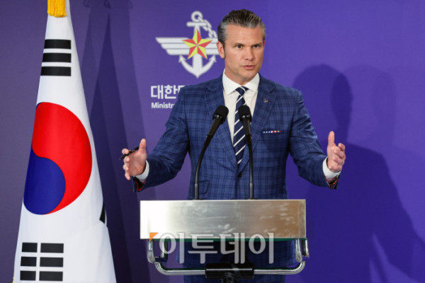 ▲피트 헤그세스 미국 전쟁부(국방부) 장관이 4일 서울 용산구 국방부 청사에서 열린 제57차 한미안보협의회의(SCM)를 마치고 가진 공동기자회견에서 취재진의 질문에 답하고 있다. 사진공동취재단