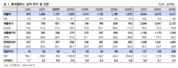 IBK투자증권은 5일 롯데웰푸드에 대해 국내 신제품 효과와 해외 매출 증가에도 불구하고 비용 부담으로 수익성이 둔화했지만, 인도법인 안정화와 원가 하락으로 내년 실적 개선이 기대된다며 투자 의견을 '매수'로 유지하고 목표 주가를 15만 원으로 상향했다.
