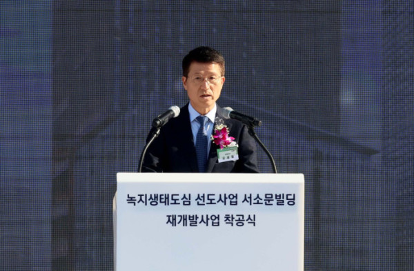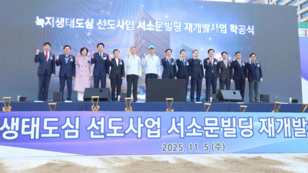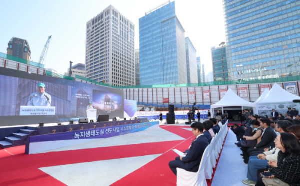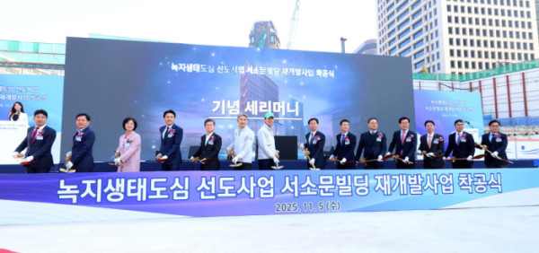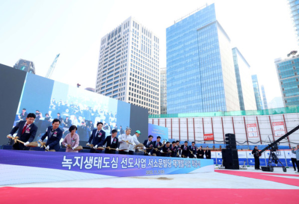5일 서울 중구 순화동 7번지에서 ‘녹지생태도심 선도사업 서소문빌딩 재개발사업 착공식’이 오세훈 서울시장, 오세철 삼성물산 대표이사, 홍원학 삼성생명 대표이사 등이 참석한 가운데 열렸다. 서울시는 이번 재개발 사업으로 노후화된 서소문 업무지구를 녹지·문화·업무를 결합한 복합지구(총 154만㎡)로 탈바꿈할 계획으로 서소문빌딩은 지하 8층~지상 38층, 연면적 24만9179㎡ 규모로 조성되며, 오는 2030년 6월 준공이 목표다.
