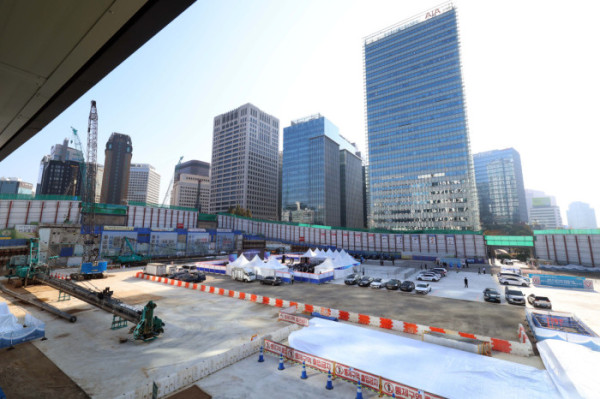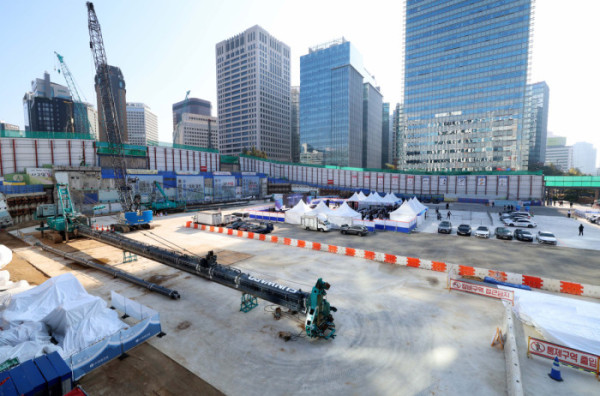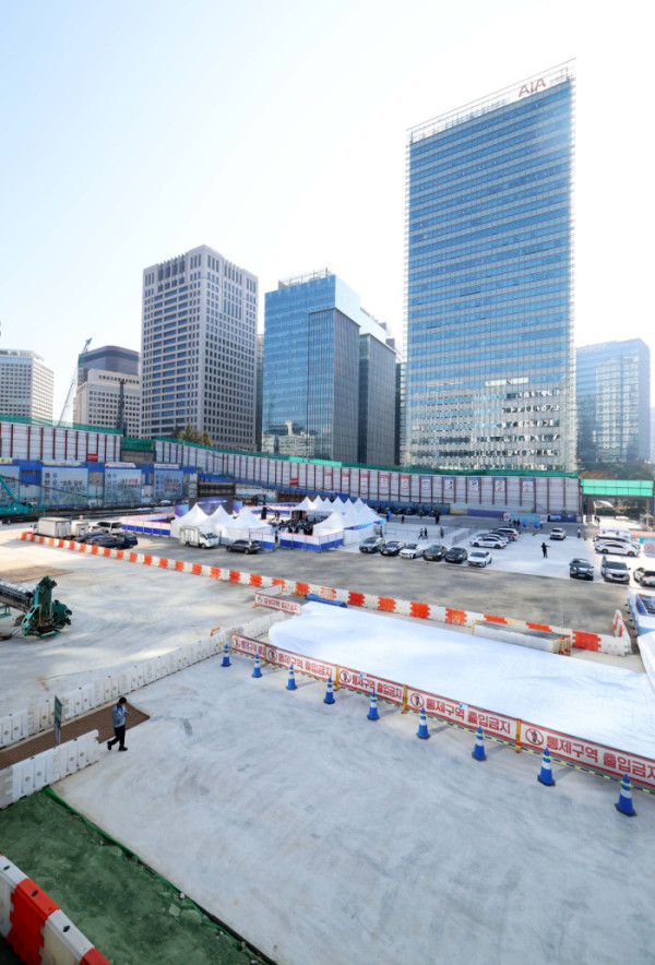 ▲5일 서울 중구 순화동 7번지에서 ‘녹지생태도심 선도사업 서소문빌딩 재개발사업 착공식’이 오세훈 서울시장, 오세철 삼성물산 대표이사, 홍원학 삼성생명 대표이사 등이 참석한 가운데 열렸다. 서울시는 이번 재개발 사업으로 노후화된 서소문 업무지구를 녹지·문화·업무를 결합한 복합지구(총 154만㎡)로 탈바꿈할 계획으로 서소문빌딩은 지하 8층~지상 38층, 연면적 24만9179㎡ 규모로 조성되며, 오는 2030년 6월 준공이 목표다. 사진은 이날 현장 모습. 신태현 기자 holjjak@