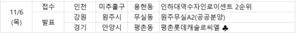 또 경기 안양시 '평촌롯데캐슬르씨엘(오피스텔)'과 강원 원주시 '원주무실A2(공공분양)'는 이날 당첨자를 발표한다.