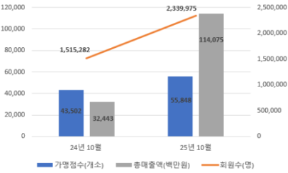 이런 정책 시행 결과 땡겨요 운영 성적은 수직으로 상승했다. 지난달 기준 누적 회원 수는 약 234만 명으로 전년 동월 대비 54.4% 증가했으며, 가맹점 수도 5만5000여 개로 28.4% 늘었다. 특히 누적 매출액(1140억 원)과 누적 주문 건수(460만 건)는 각각 3.5배와 3.1배 급증했다.