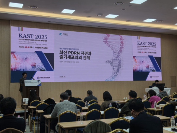 이번 학술대회에서 의사 출신의 의과학자이자 제론셀베인 김덕규 대표는 ‘재생의학 치료에 도움되는 PDRN’을 주제로 발표를 진행하며, 세포 치료 및 조직 재생 과정에서 핵심 역할을 하는 PDRN의 작용기전과 임상적 적용 가능성에 대해 심도 있게 다뤘다.
