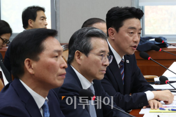 6일 서울 여의도 국회 운영위원회에서 대통령실 국정감사가 열리고 있다. 이날 국감에는 강훈식 대통령 비서실장, 김용범 대통령비서실 정책실장, 위성락 국가안보실장, 우상호 대통령비서실 정무수석, 강병인 대통령경호처 기획관리실장 직무대리 등이 참석했다. 고이란 기자 photoeran@