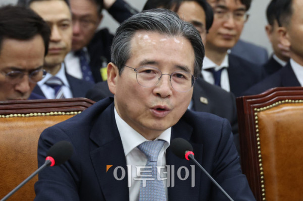 ▲위성락 국가안보실장이 6일 서울 여의도 국회 운영위원회에서 열린 국정감사에서 의원 질의에 답하고 있다. 고이란 기자 photoeran@