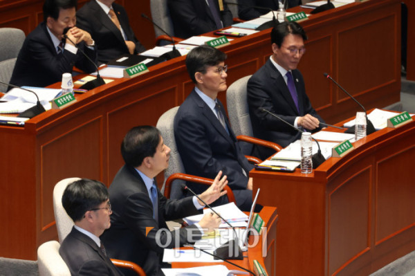 ▲구윤철 경제부총리 겸 기획재정부 장관이 6일 서울 여의도 국회에서 열린 예산결산특별위원회 전체회의에서 의원 질의에 답하고 있다. 고이란 기자 photoeran@