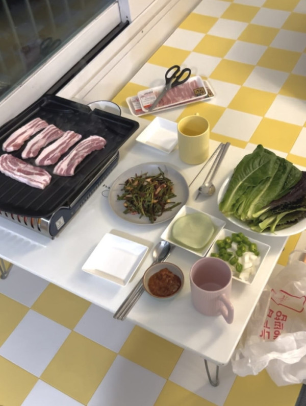 5일 A 씨는 자신의 SNS에 “베란다에서 삼겹살을 구워 먹었다”는 제목의 글을 게시했다. A 씨는 “옥상 있는 곳에 살다가 아파트 와서 아쉬웠는데, 베란다에 조립식 타일 깔고 여기서 외식해도 될 것 같다”며 휴대용 가스레인지(가스버너) 위에 삼겹살을 구워 먹는 사진을 게재했다.